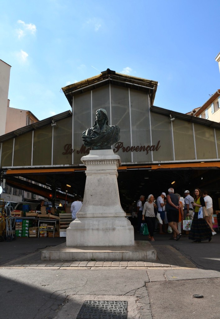 Situé au cours Massena, à quelques pas de la Mairie, de la Cathédrale et du musée Picasso, bordé, sous de petites arcades, de nombreux cafés et restaurants, le marché accueille touristes et population locale venus y faire leurs courses ou simplement boire un café entre amis. La foule et l’atmosphère conviviale du lieu invitent à prendre son temps en goûtant chaque instant passé sous l’immense toiture. Gens pressés ou de méchante humeur s’abstenir. On est ici au cœur de la Provence…sur la Côte d’Azur!