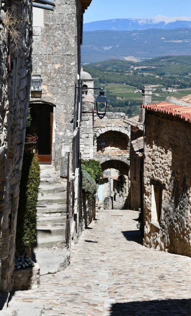 Il n’empêche que Lacoste dégage un charme provençal tout aussi authentique que celui de ses voisin. Nous sommes bien au royaume du patrimoine médiéval et des maisons de pierre! Au fil des rues montantes, descendantes et serpentantes, on découvre de très belles maisons de pierre restaurées, des arches somptueux, les deux portes médiévales. L’ascension vers le château est un délice…malgré le nombre de touristes et, pour certain, la raideur de la montée!